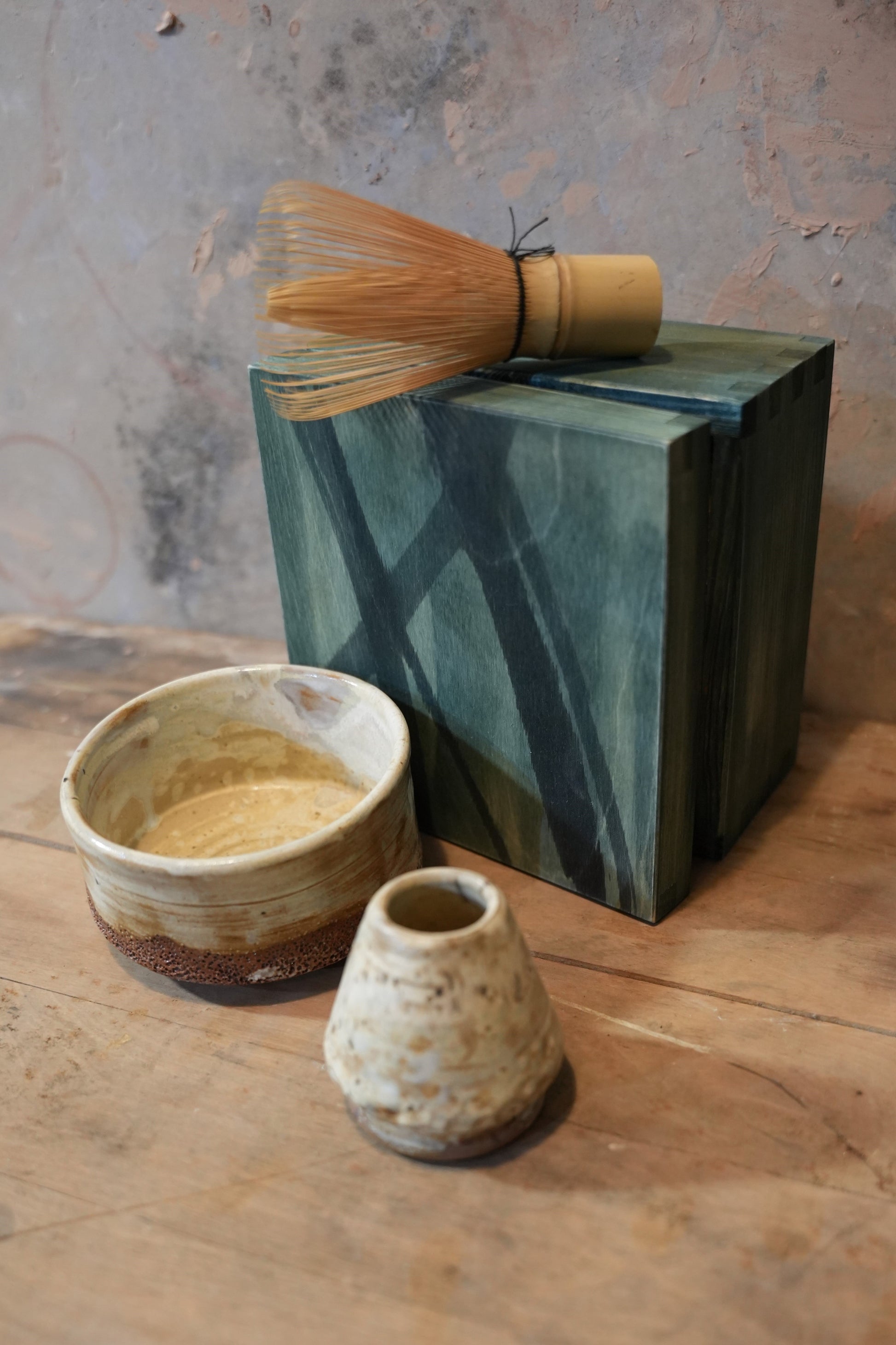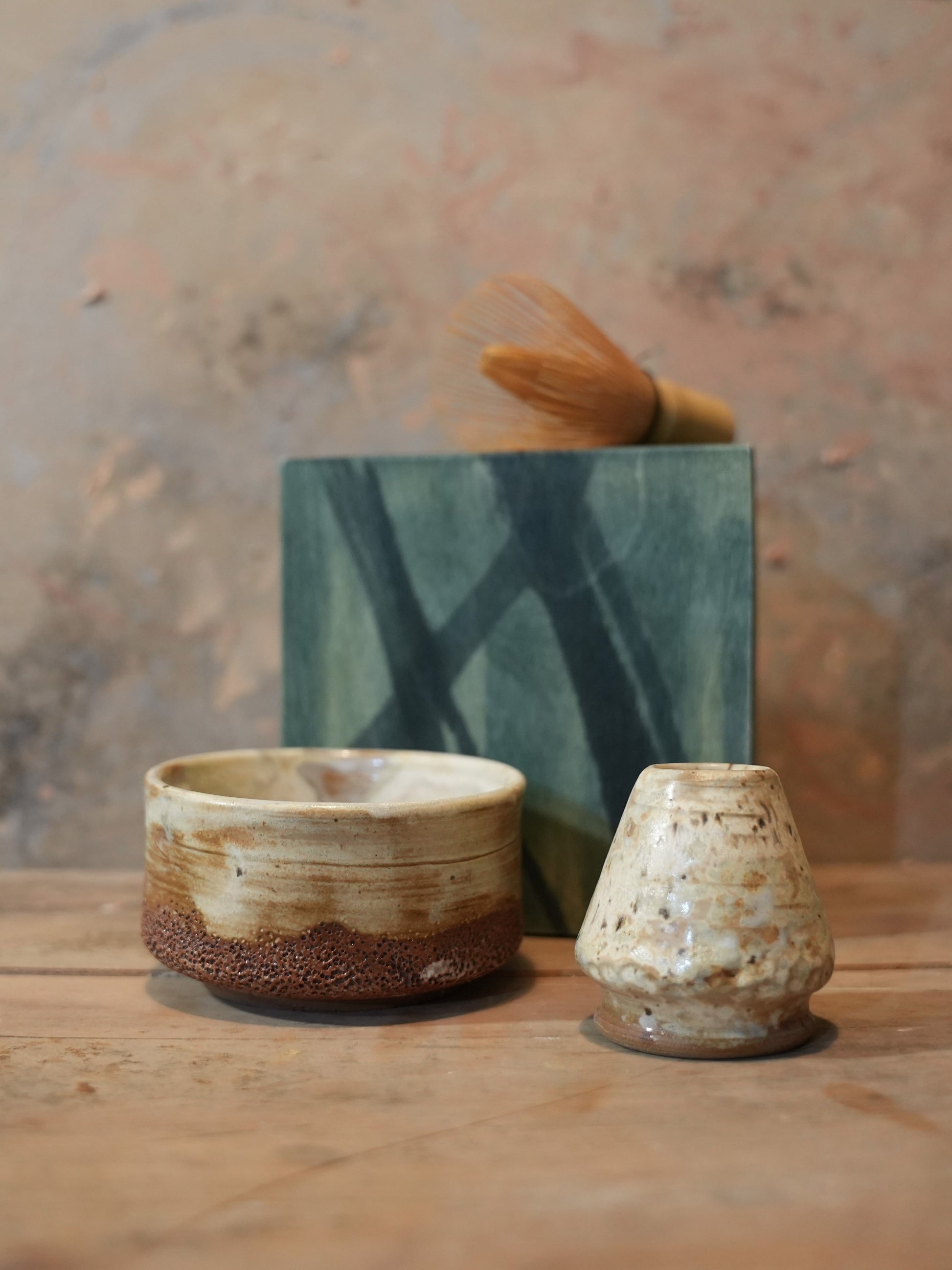Ces créations sont issues d’une commission artistique exclusivement pour Kumiko Matcha : une collection de bols à matcha accompagnés de leur naoshi d’une rare beauté.